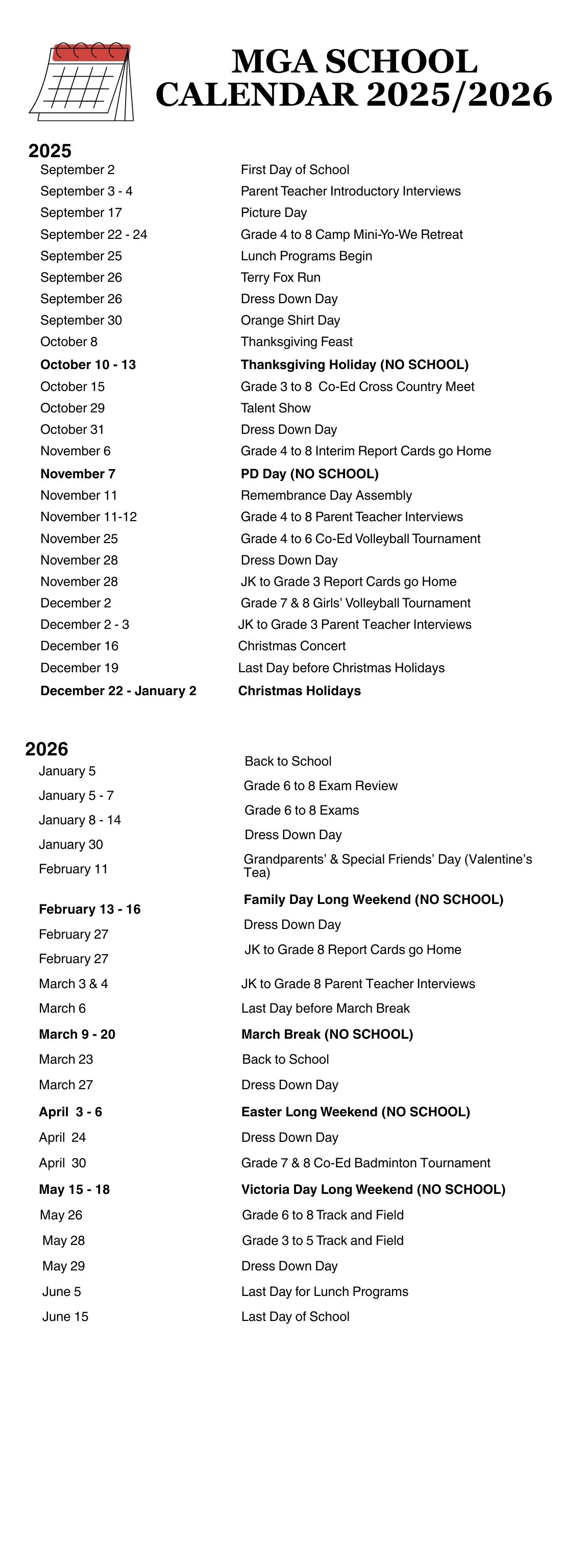 School Calendar 2025/2026 Year Upcoming Events Download Calendar Take Your Next Step Learn About Us Visit Us Apply